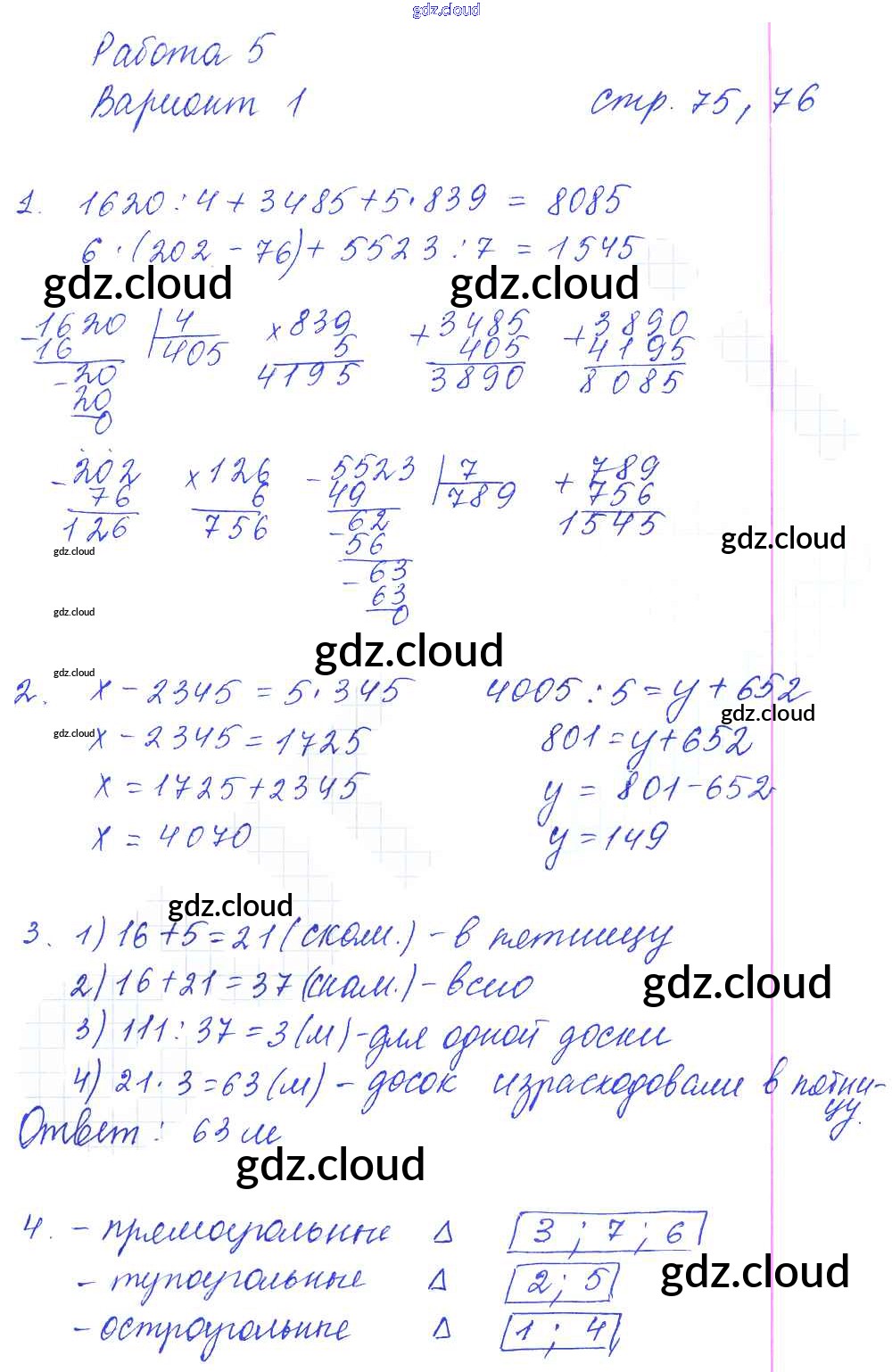 Ответ на задание 75-76 Тетрадь для самостоятельной работы Математика за 4 (четвертый) класс Самсонова УМК 2011 Часть 1, 2