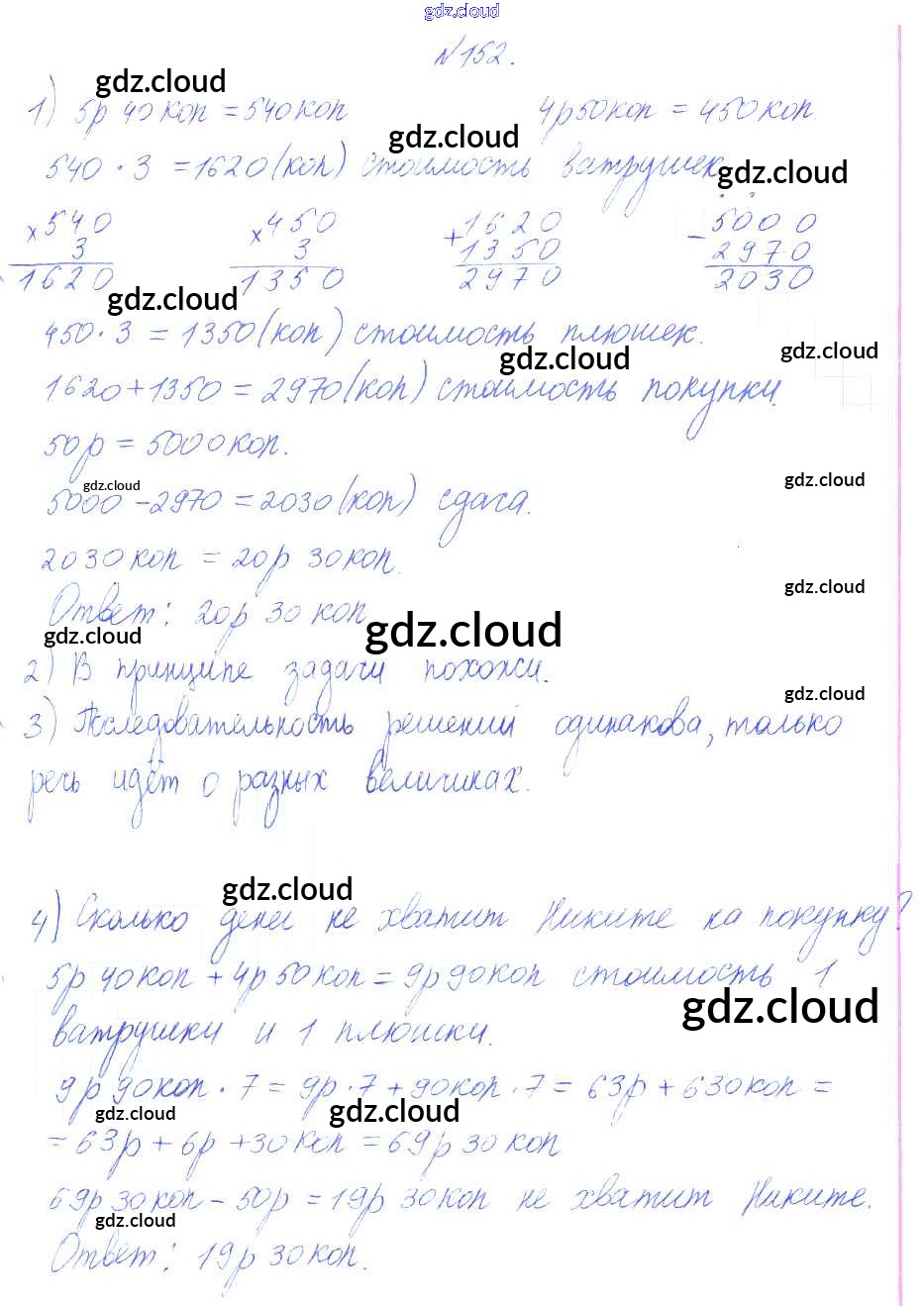 Ответ на задание 152 Учебник Математика за 4 (четвертый) класс Аргинская, Ивановская, Кормишина УМК 2014 Часть 1, 2