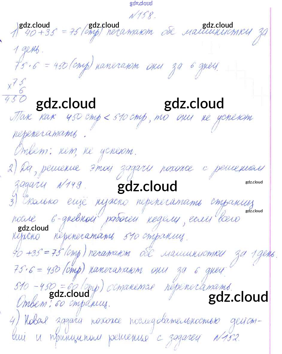 Ответ на задание 158 Учебник Математика за 4 (четвертый) класс Аргинская, Ивановская, Кормишина УМК 2014 Часть 1, 2
