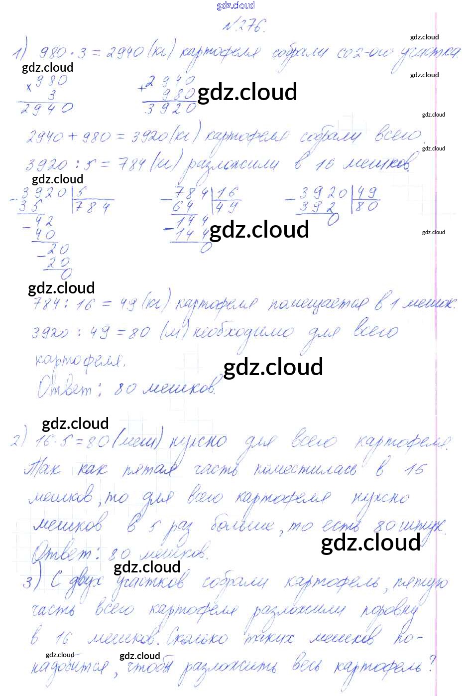 Ответ на задание 276 Учебник Математика за 4 (четвертый) класс Аргинская, Ивановская, Кормишина УМК 2014 Часть 1, 2
