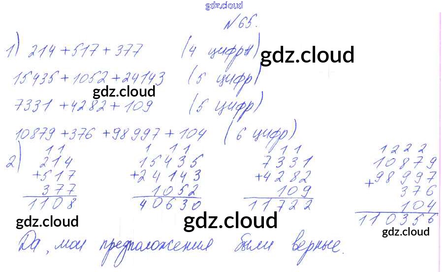 Ответ на задание 65 Учебник Математика за 4 (четвертый) класс Аргинская, Ивановская, Кормишина УМК 2014 Часть 1, 2 ФГОС онлайн и без номера телефона.