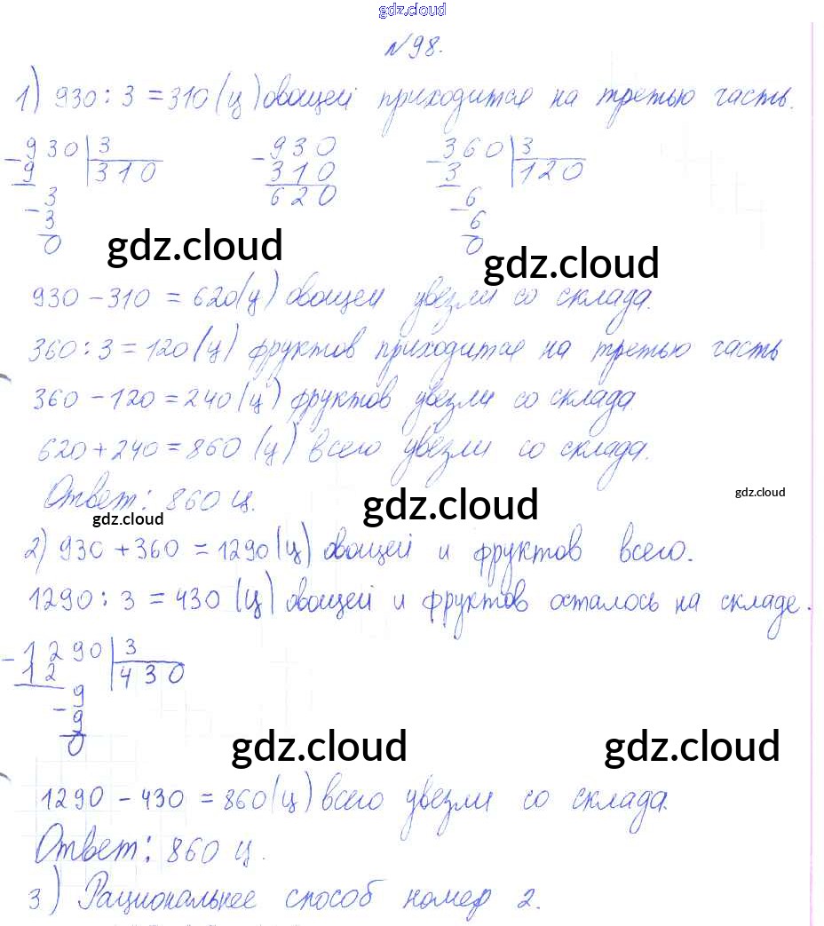 Ответ на задание 98 Учебник Математика за 4 (четвертый) класс Аргинская, Ивановская, Кормишина УМК 2014 Часть 1, 2 ФГОС онлайн и без номера телефона.