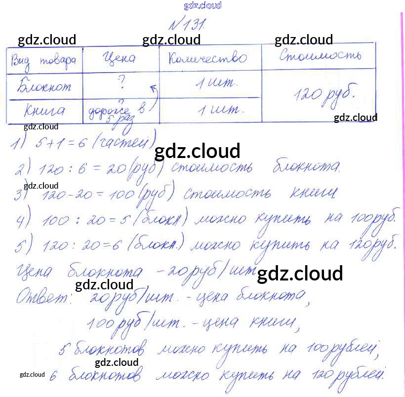 Ответ на задание 131 Учебник Математика за 4 (четвертый) класс Чекин Перспективная начальная школа 2012 Часть 1, 2