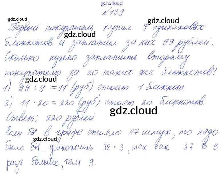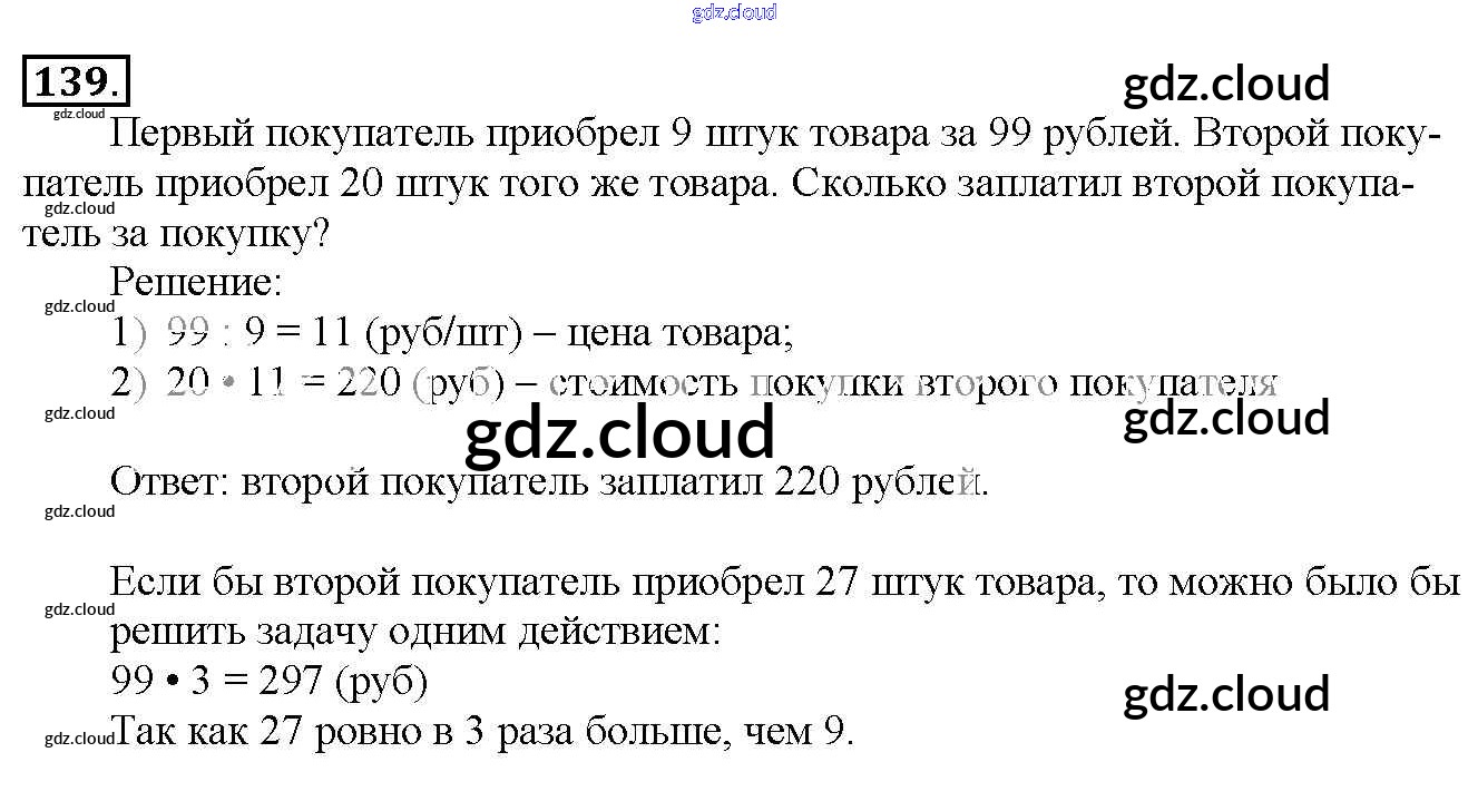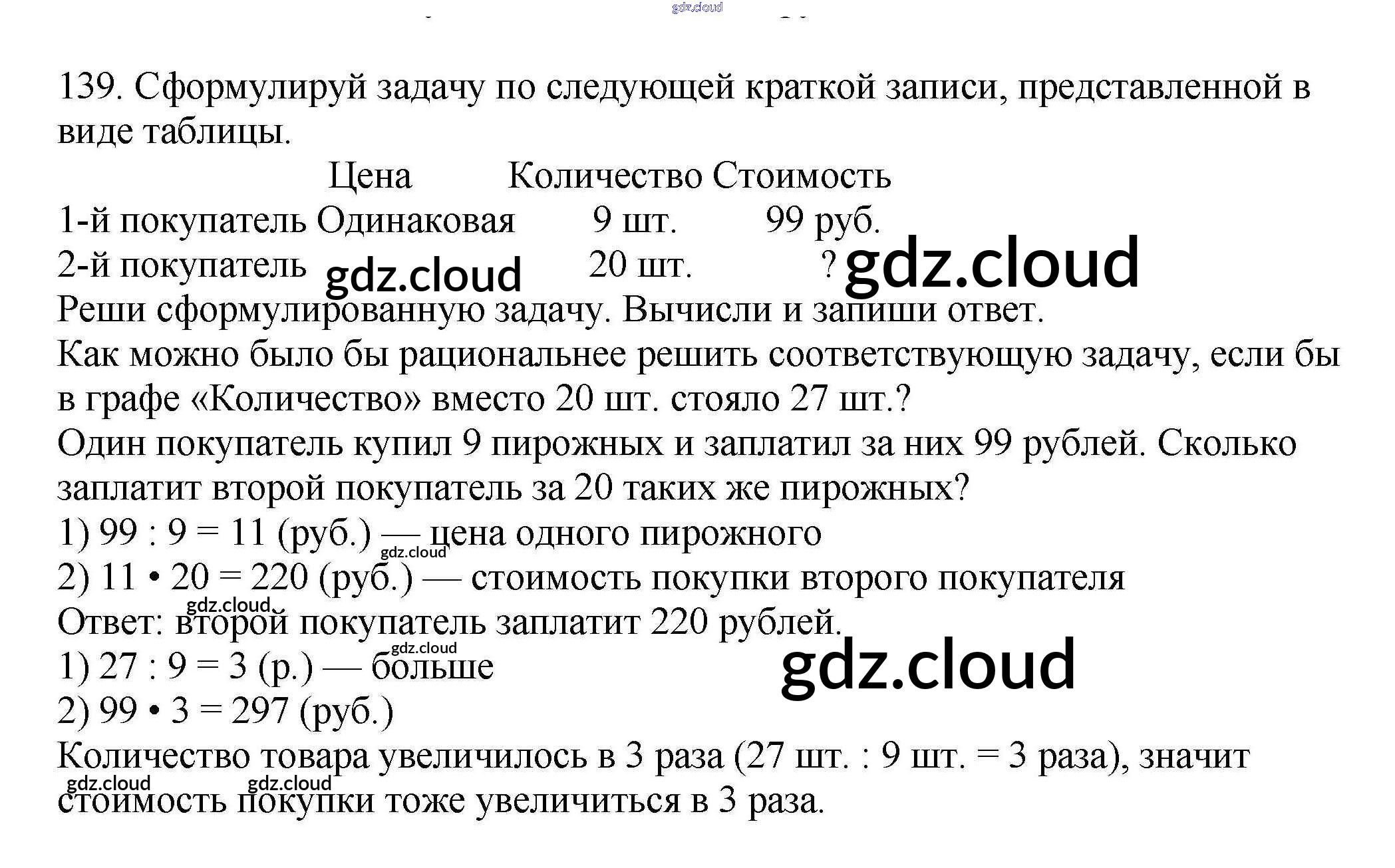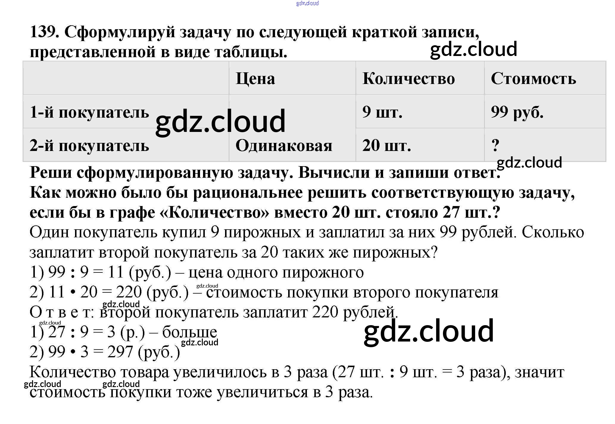 Ответ на задание 139 Учебник Математика за 4 (четвертый) класс Чекин Перспективная начальная школа 2012 Часть 1, 2