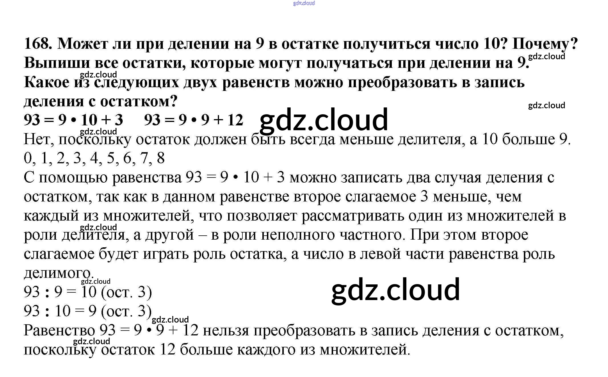 Ответ на задание 168 Учебник Математика  за 4 (четвертый) класс Чекин Перспективная начальная школа  2012 Часть 1, 2