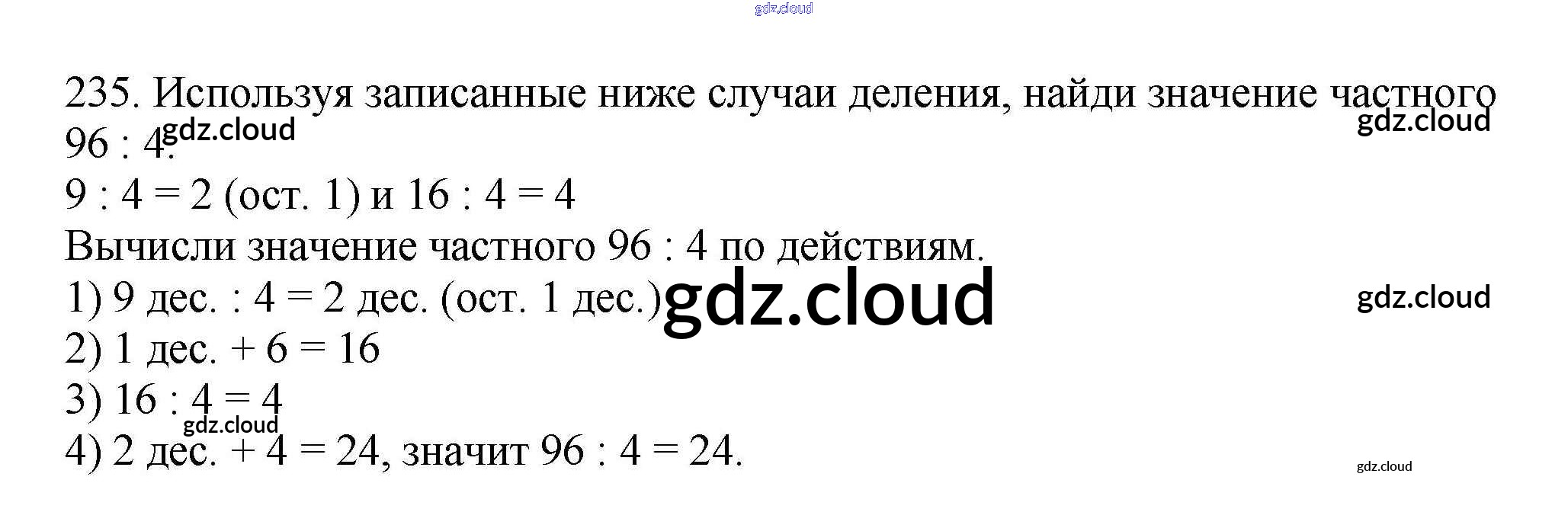 Ответ на задание 235 Учебник Математика за 4 (четвертый) класс Чекин Перспективная начальная школа 2012 Часть 1, 2