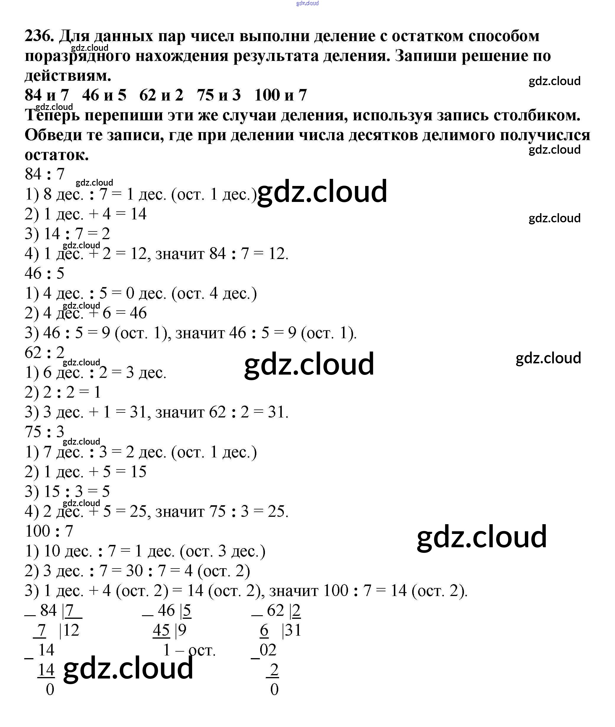Ответ на задание 236 Учебник Математика за 4 (четвертый) класс Чекин Перспективная начальная школа 2012 Часть 1, 2