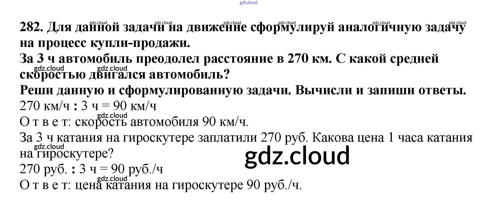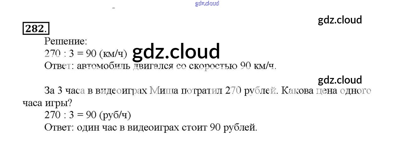 Ответ на задание 282 Учебник Математика за 4 (четвертый) класс Чекин Перспективная начальная школа 2012 Часть 1, 2
