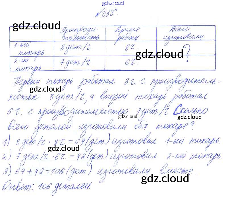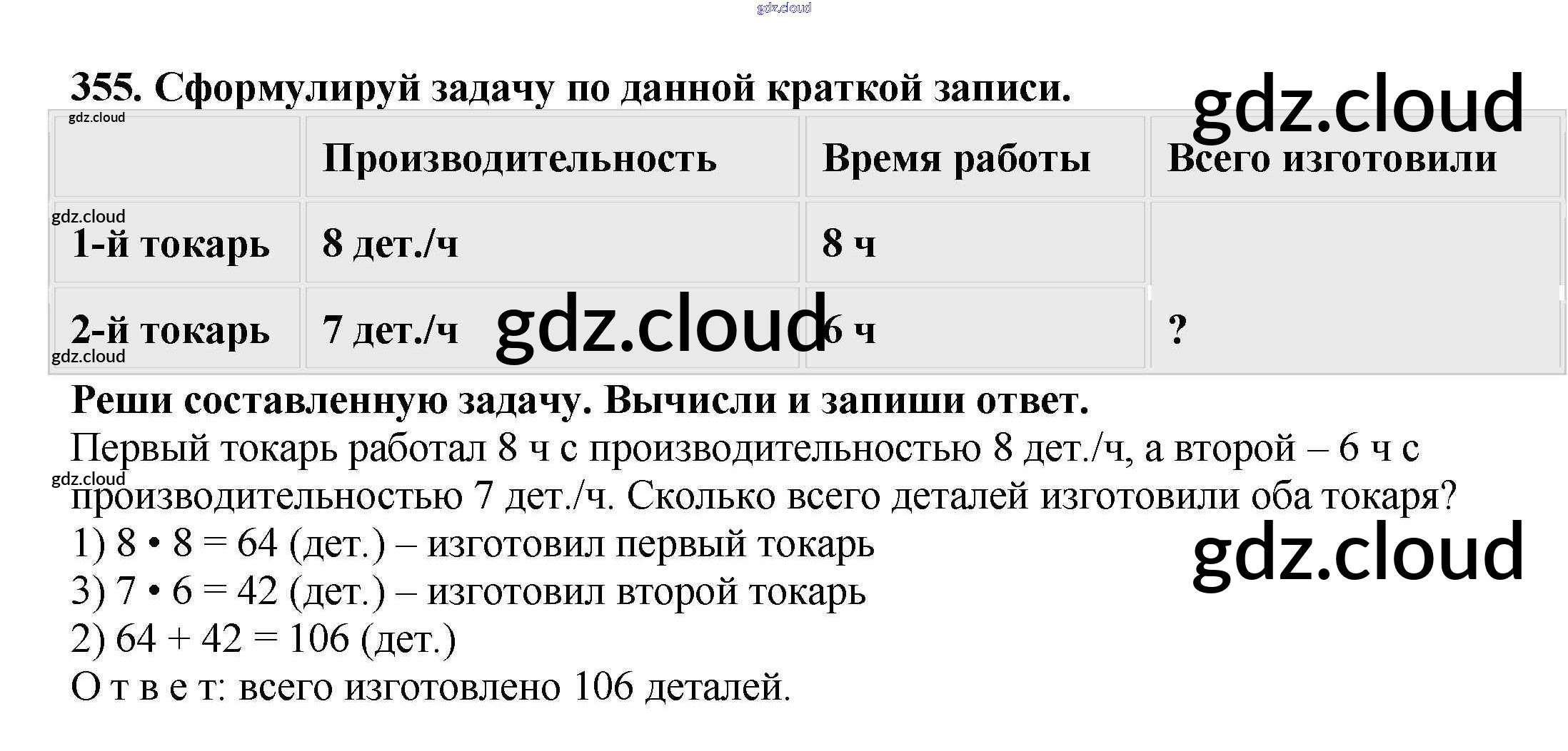 Ответ на задание 355 Учебник Математика за 4 (четвертый) класс Чекин Перспективная начальная школа 2012 Часть 1, 2