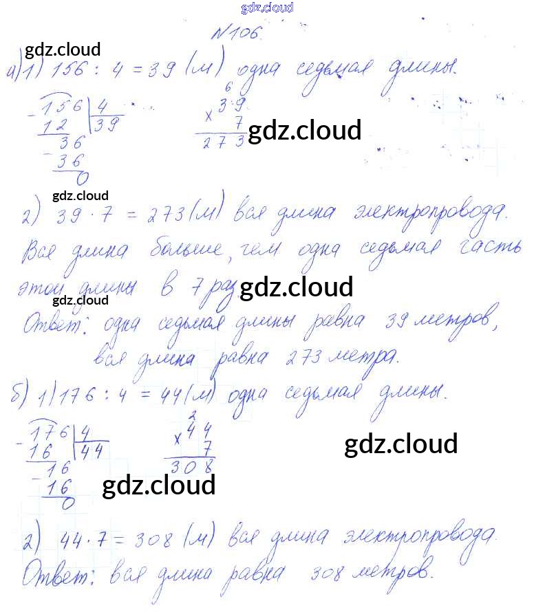 Ответ на задание 106 Учебник Математика за 4 (четвертый) класс Чекин Перспективная начальная школа 2012 Часть 1, 2