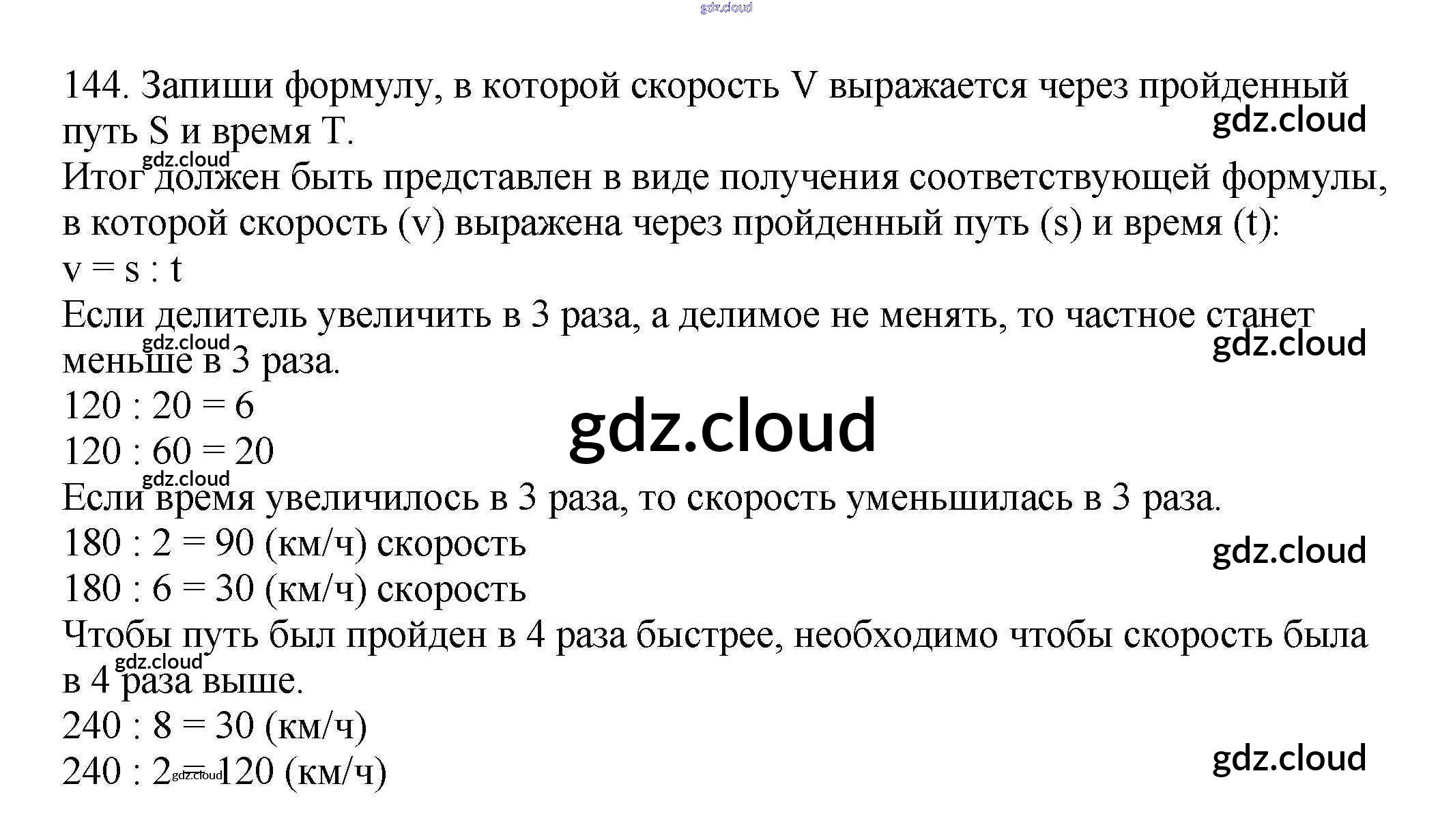 Ответ на задание 144 Учебник Математика за 4 (четвертый) класс Чекин Перспективная начальная школа 2012 Часть 1, 2