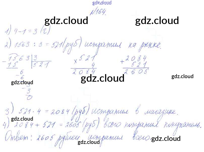 Ответ на задание 164 Учебник Математика за 4 (четвертый) класс Чекин Перспективная начальная школа 2012 Часть 1, 2