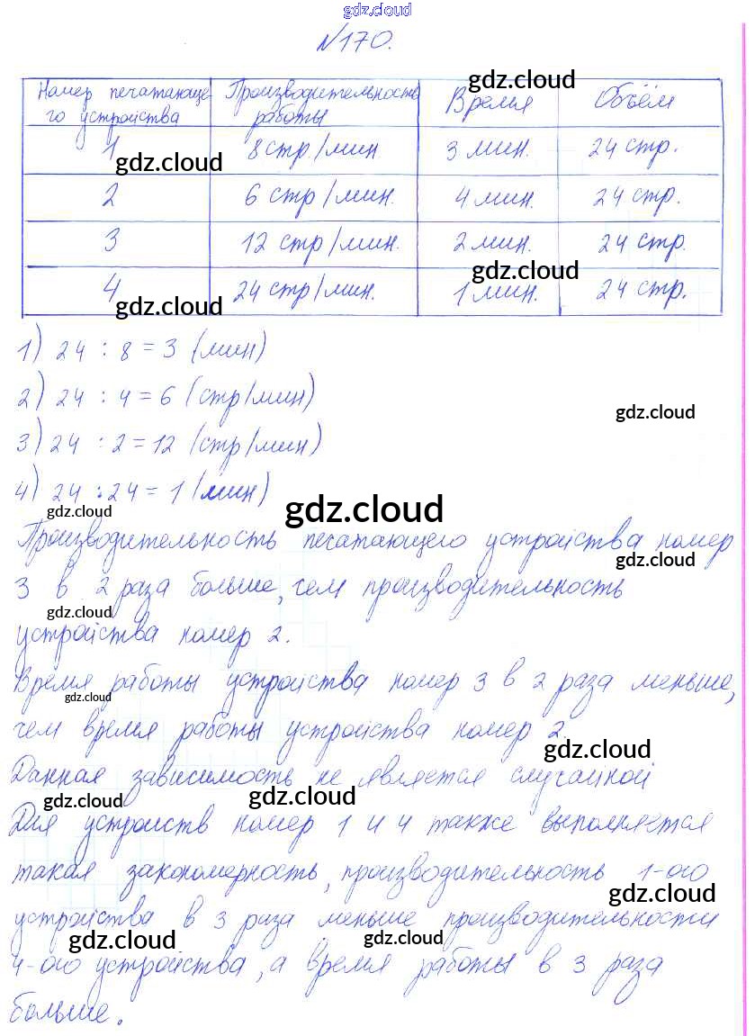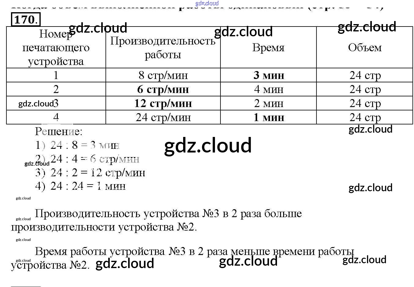 Ответ на задание 170 Учебник Математика за 4 (четвертый) класс Чекин Перспективная начальная школа 2012 Часть 1, 2
