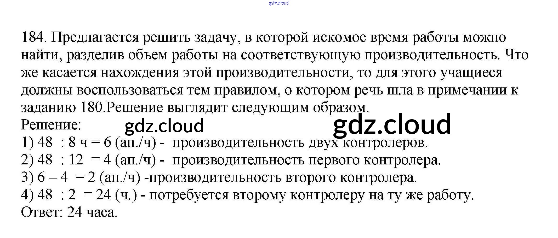 Ответ на задание 184 Учебник Математика за 4 (четвертый) класс Чекин Перспективная начальная школа 2012 Часть 1, 2