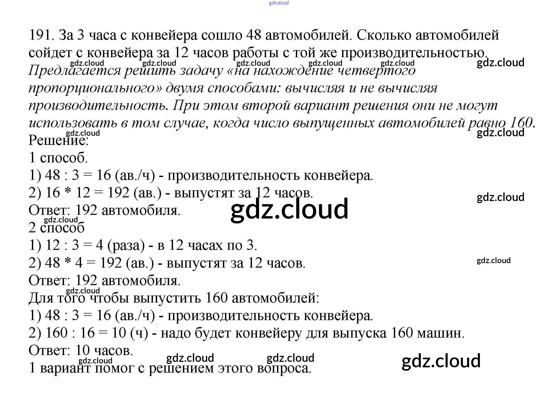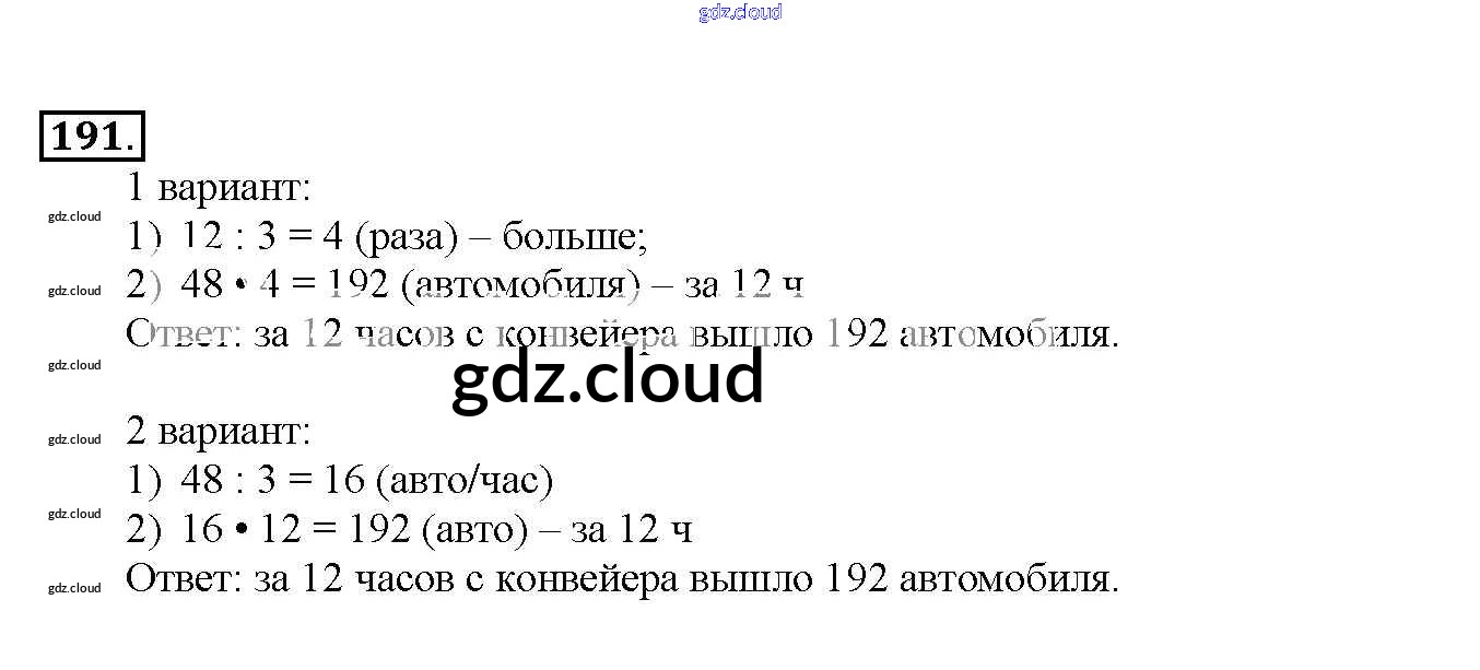 Ответ на задание 191 Учебник Математика за 4 (четвертый) класс Чекин Перспективная начальная школа 2012 Часть 1, 2