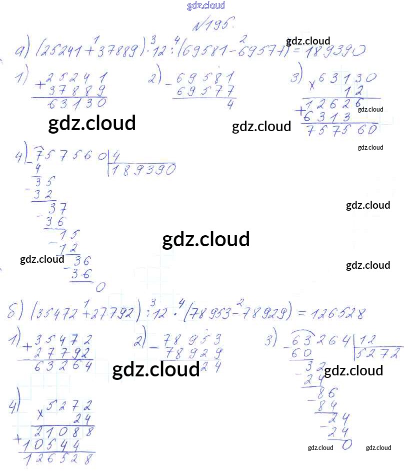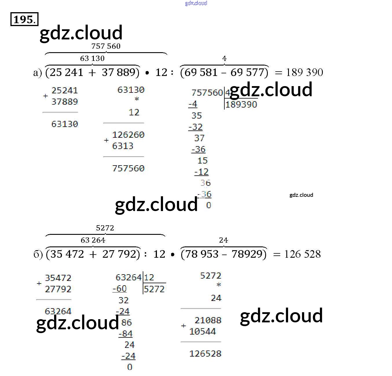 Ответ на задание 195 Учебник Математика за 4 (четвертый) класс Чекин Перспективная начальная школа 2012 Часть 1, 2