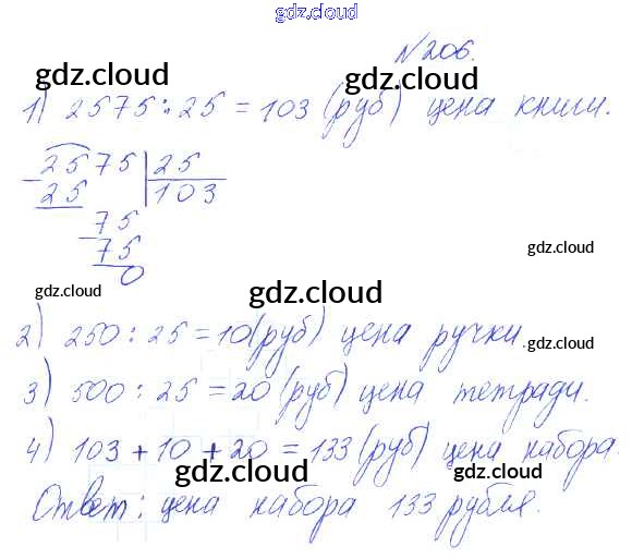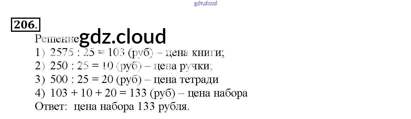 Ответ на задание 206 Учебник Математика за 4 (четвертый) класс Чекин Перспективная начальная школа 2012 Часть 1, 2
