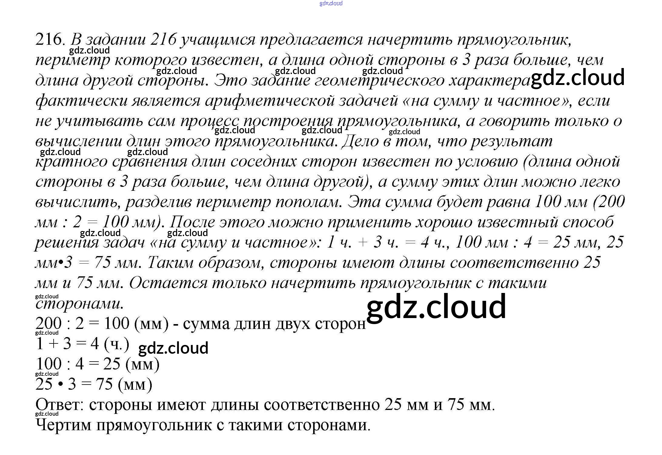 Ответ на задание 216 Учебник Математика  за 4 (четвертый) класс Чекин Перспективная начальная школа  2012 Часть 1, 2