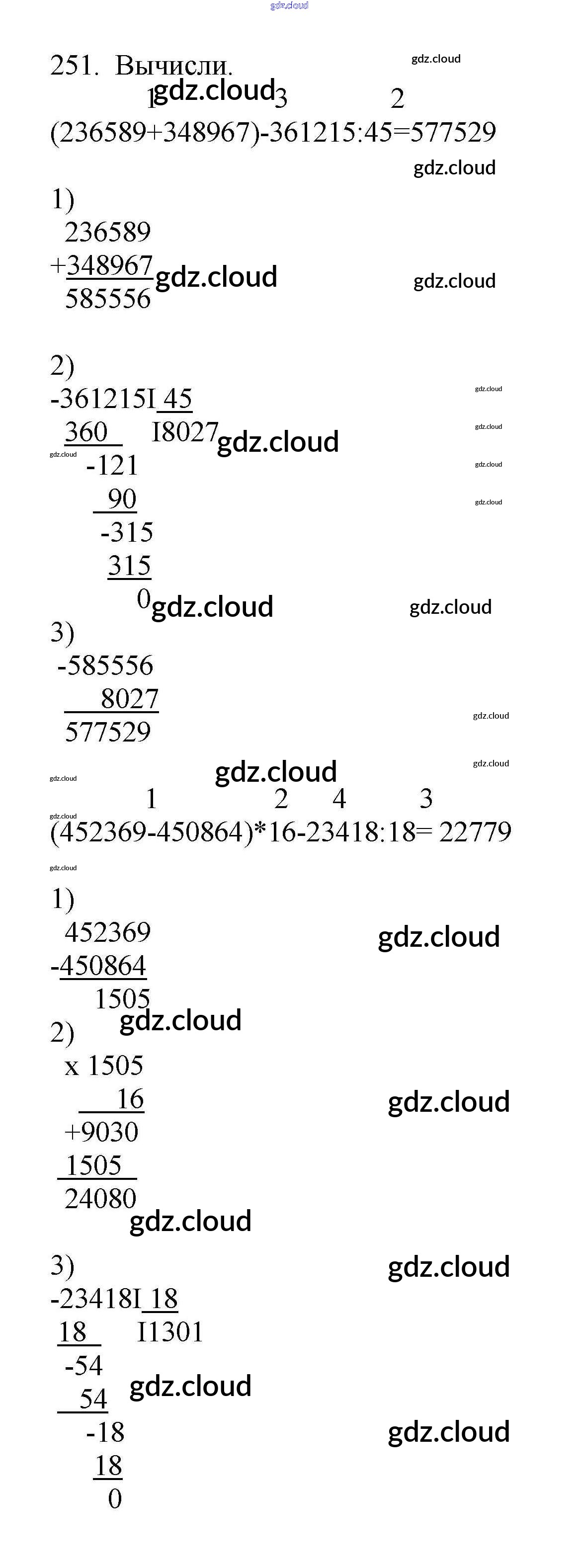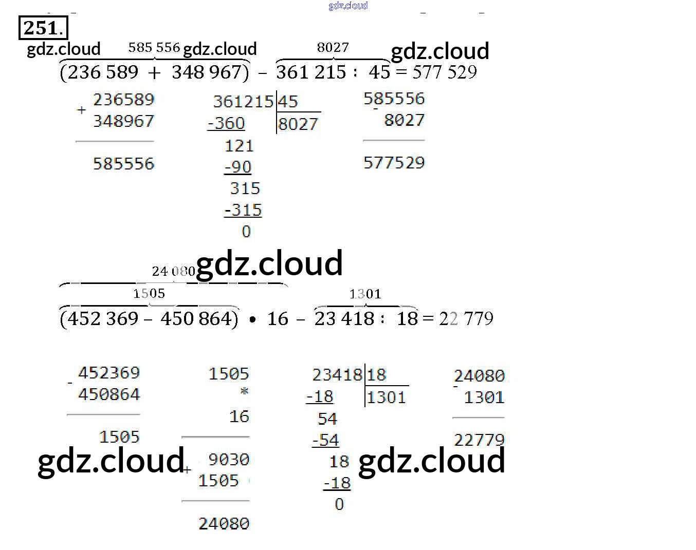 Ответ на задание 251 Учебник Математика за 4 (четвертый) класс Чекин Перспективная начальная школа 2012 Часть 1, 2