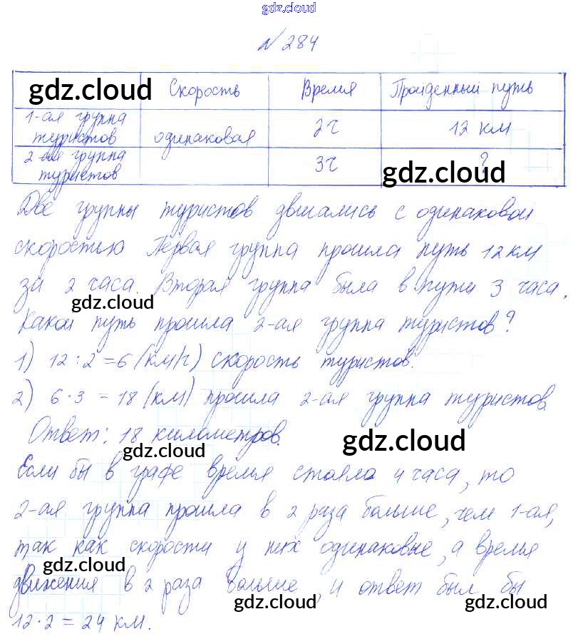 Ответ на задание 284 Учебник Математика за 4 (четвертый) класс Чекин Перспективная начальная школа 2012 Часть 1, 2
