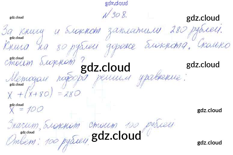 Ответ на задание 308 Учебник Математика за 4 (четвертый) класс Чекин Перспективная начальная школа 2012 Часть 1, 2