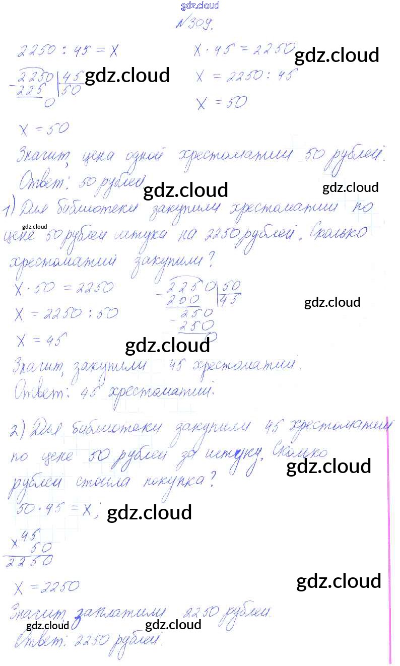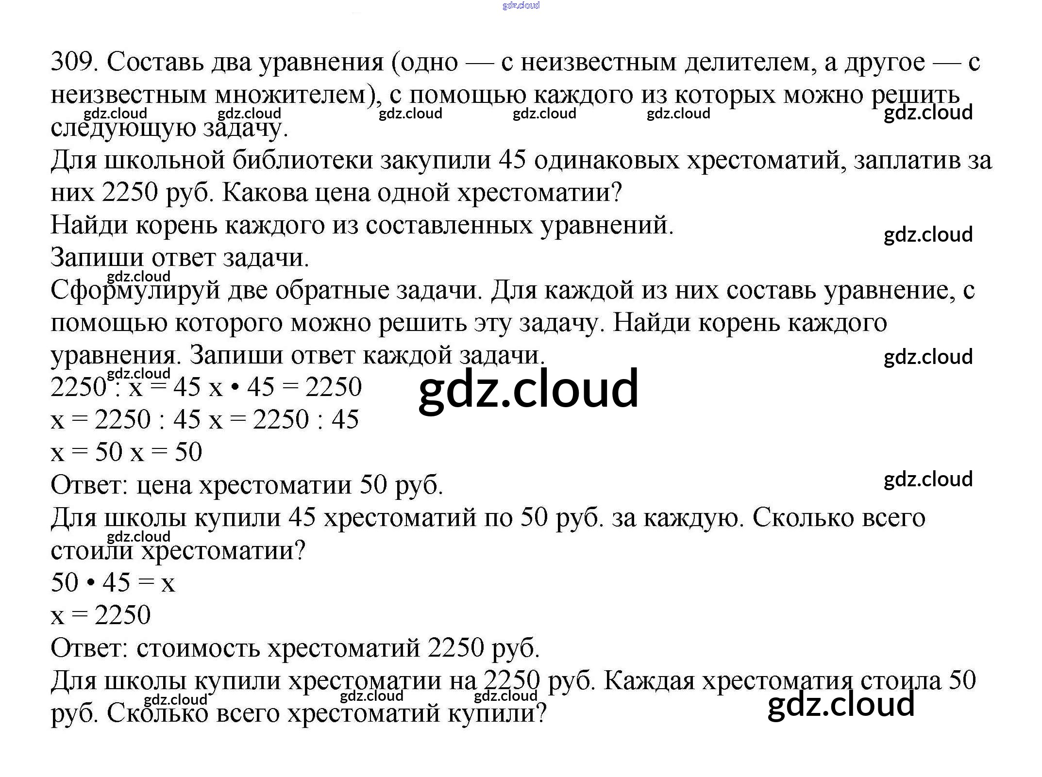 Ответ на задание 309 Учебник Математика  за 4 (четвертый) класс Чекин Перспективная начальная школа  2012 Часть 1, 2