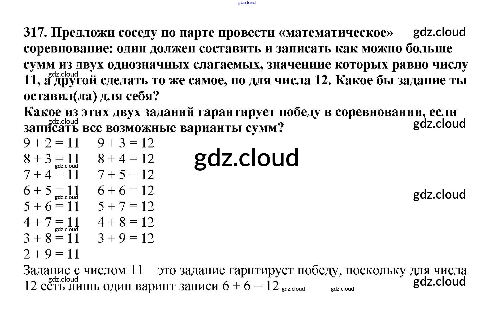 Ответ на задание 317 Учебник Математика за 4 (четвертый) класс Чекин Перспективная начальная школа 2012 Часть 1, 2