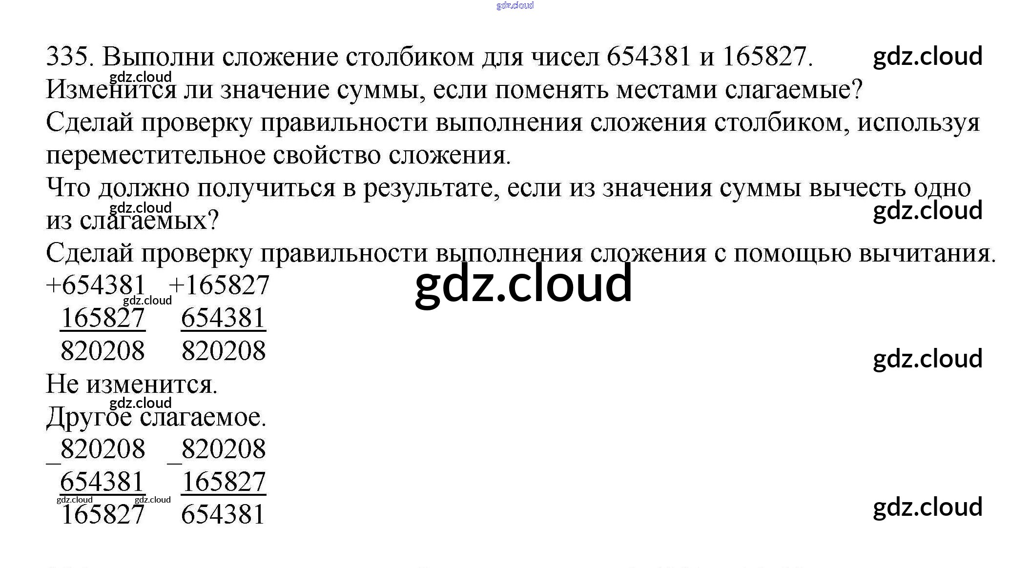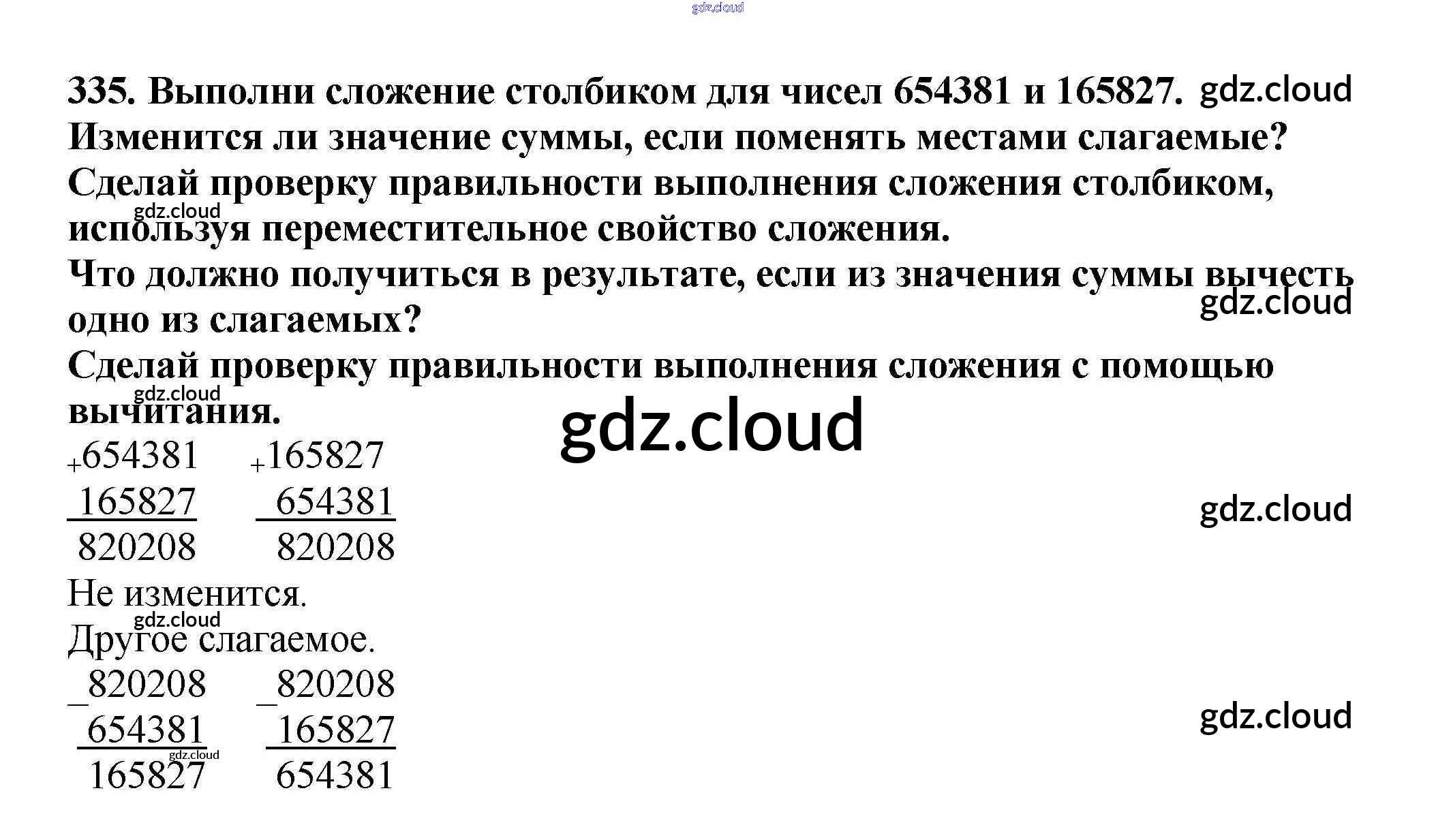 Ответ на задание 335 Учебник Математика  за 4 (четвертый) класс Чекин Перспективная начальная школа  2012 Часть 1, 2