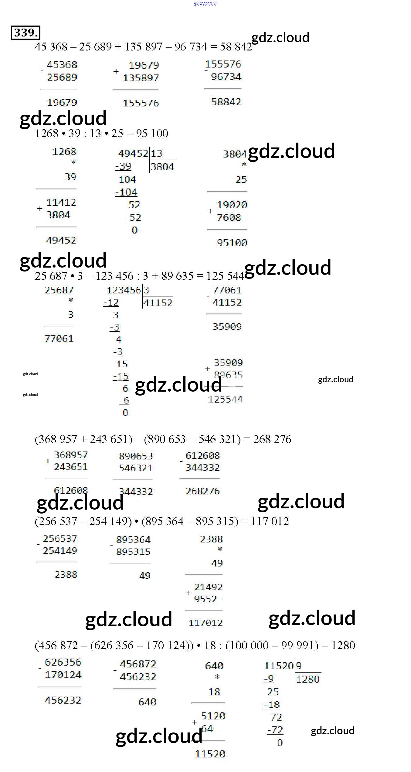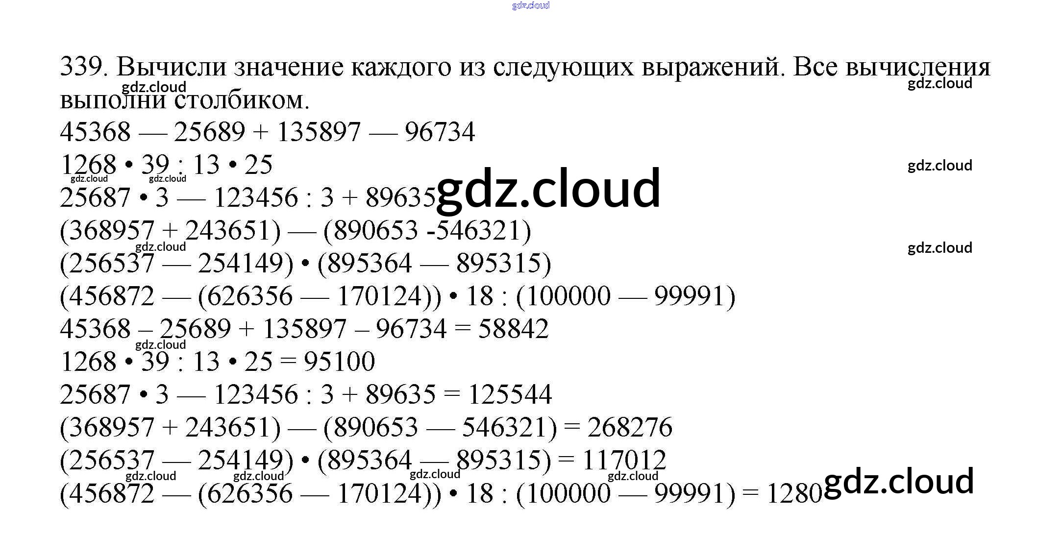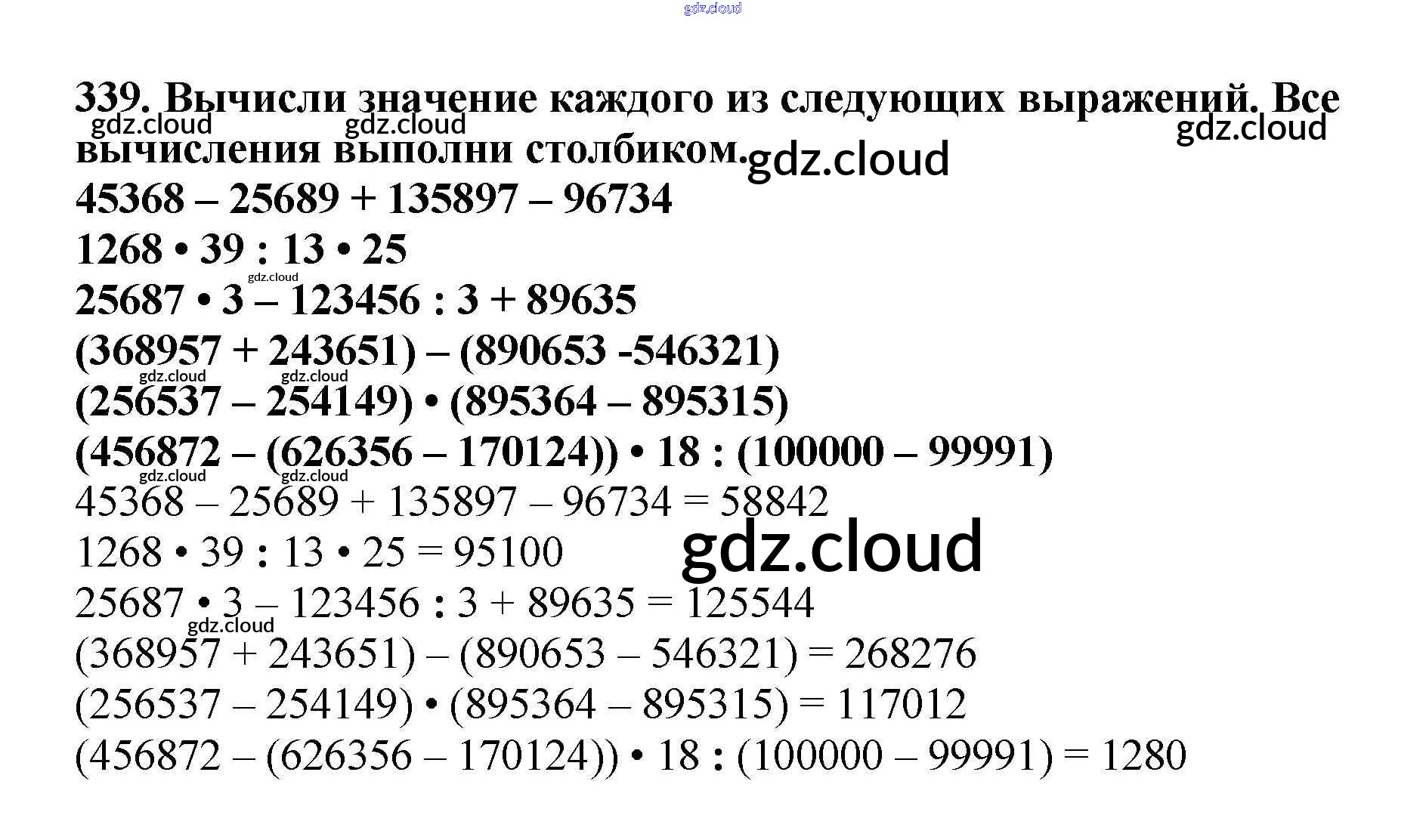Ответ на задание 339 Учебник Математика за 4 (четвертый) класс Чекин Перспективная начальная школа 2012 Часть 1, 2