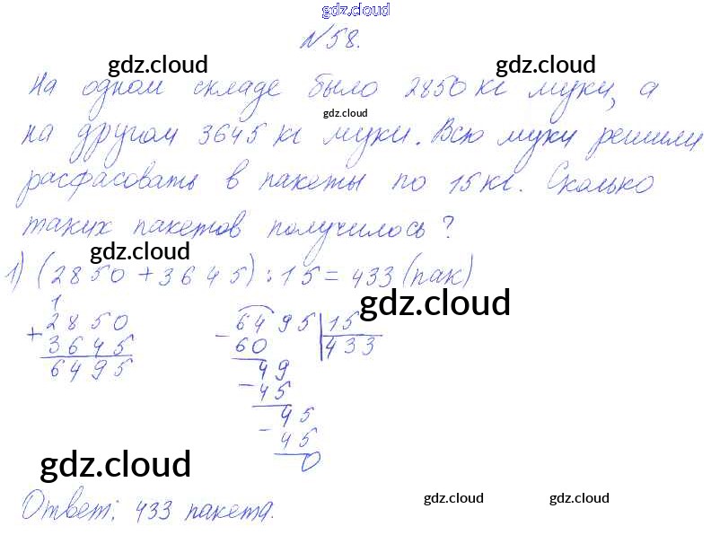 Ответ на задание 58 Учебник Математика за 4 (четвертый) класс Чекин Перспективная начальная школа 2012 Часть 1, 2