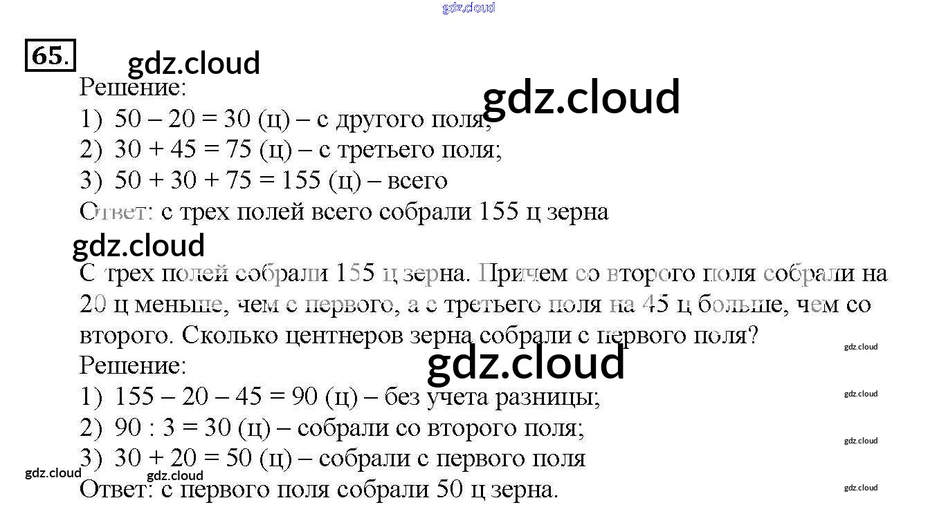 Ответ на задание 65 Учебник Математика за 4 (четвертый) класс Чекин Перспективная начальная школа 2012 Часть 1, 2