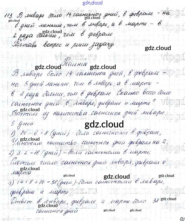 Ответ на задание 113 Учебник Математика за 4 (четвертый) класс Моро, Бантова, Бельтюкова, Волкова, Степанова Школа России 2015 Часть 1, 2