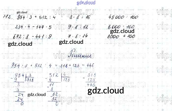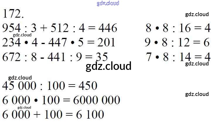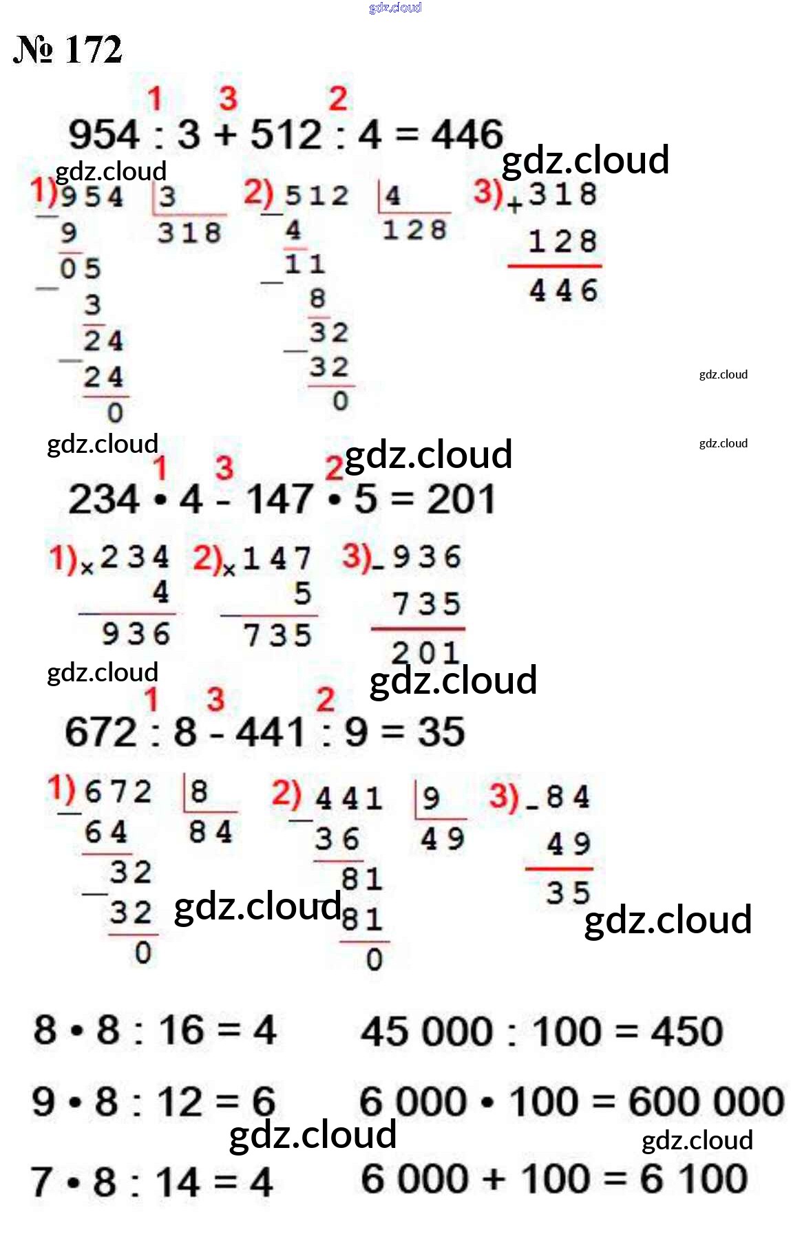 Ответ на задание 172 Учебник Математика за 4 (четвертый) класс Моро, Бантова, Бельтюкова, Волкова, Степанова Школа России 2015 Часть 1, 2