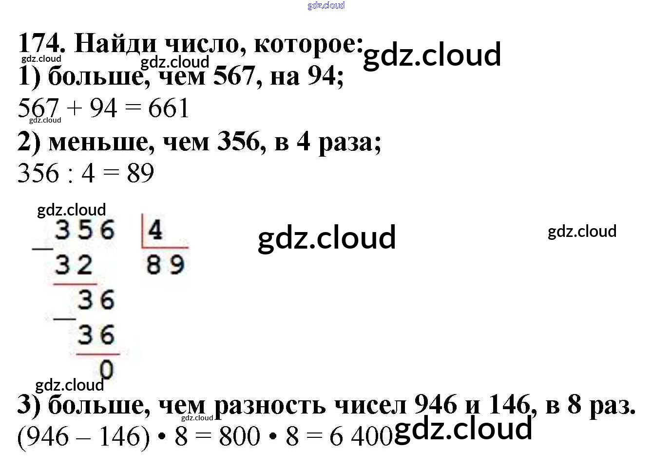 Ответ на задание 174 Учебник Математика за 4 (четвертый) класс Моро, Бантова, Бельтюкова, Волкова, Степанова Школа России 2015 Часть 1, 2