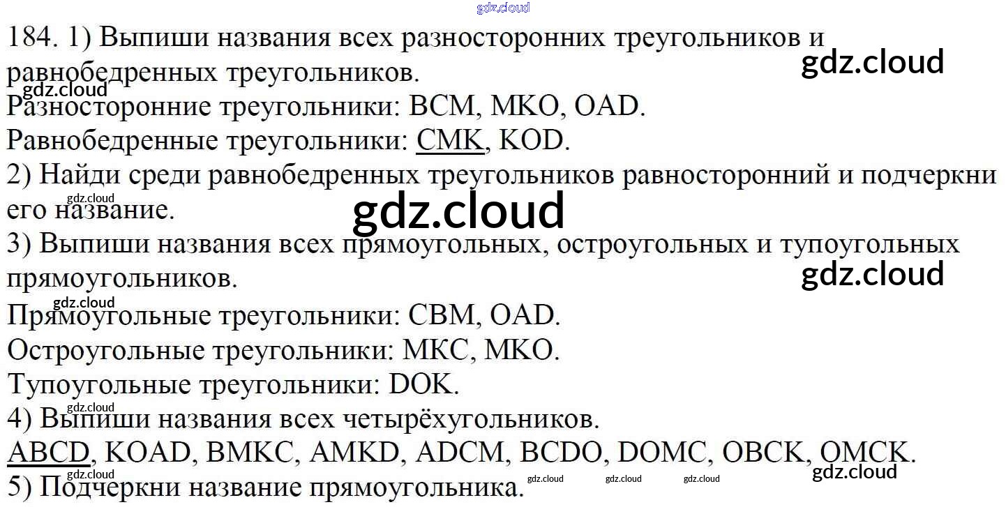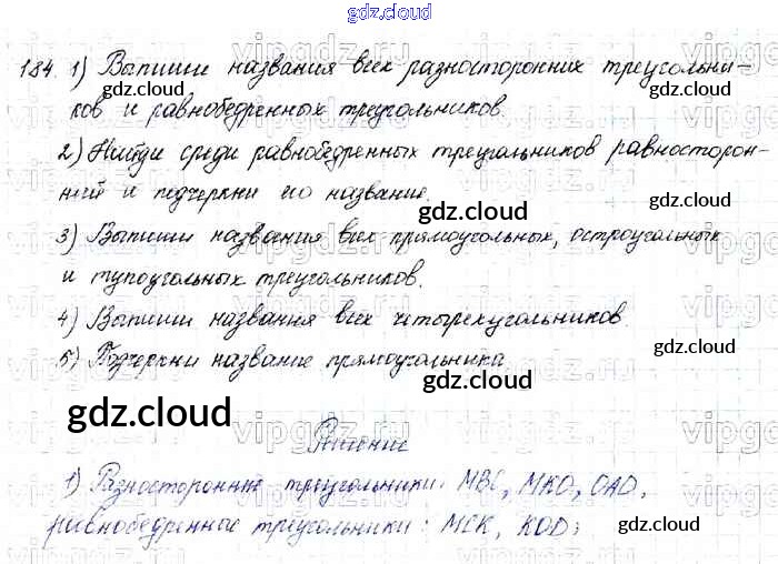 Ответ на задание 184 Учебник Математика за 4 (четвертый) класс Моро, Бантова, Бельтюкова, Волкова, Степанова Школа России 2015 Часть 1, 2