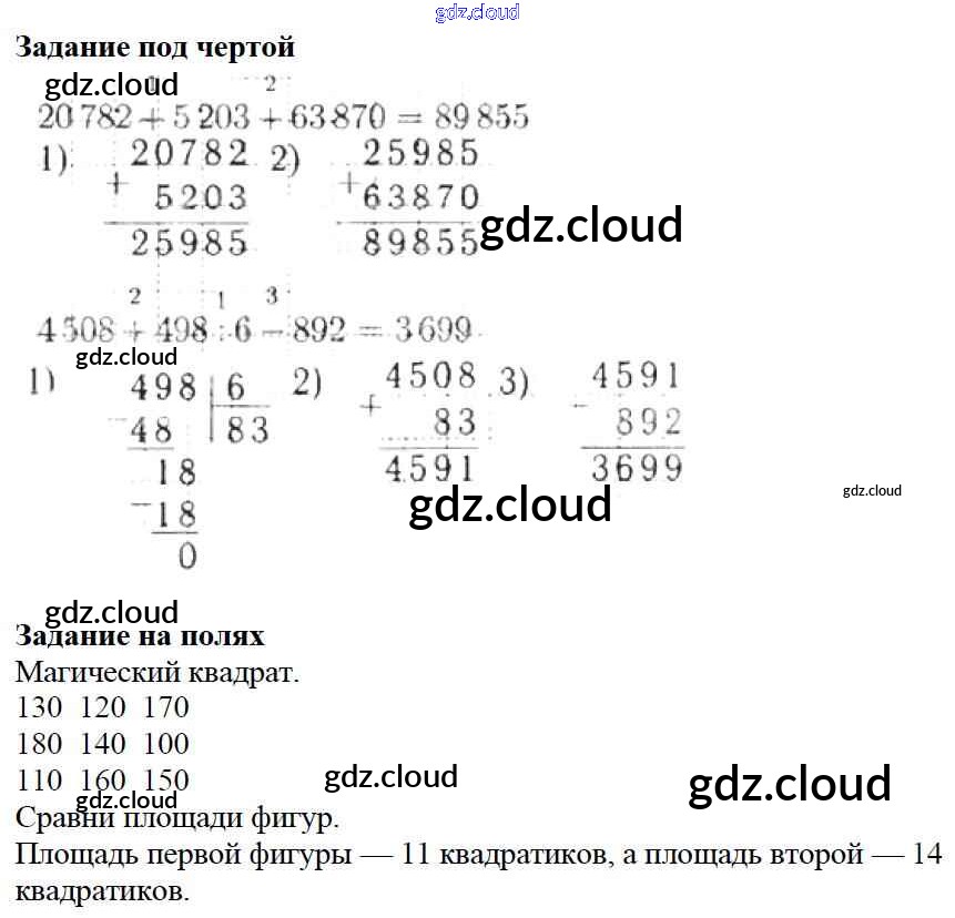 Задания внизу и на полях страницы Упражнения по Математике 4 класс Учебник Моро Школа России Часть 1, 2 Просвещение