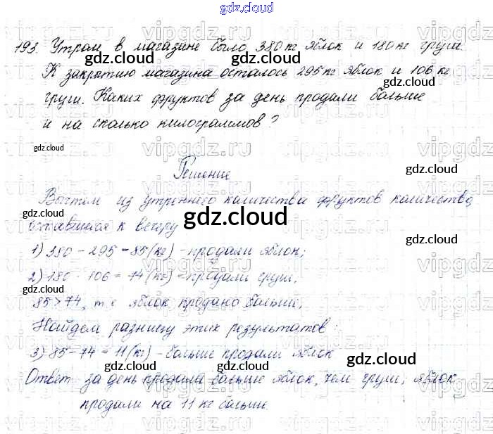 Ответ на задание 193 Учебник Математика за 4 (четвертый) класс Моро, Бантова, Бельтюкова, Волкова, Степанова Школа России 2015 Часть 1, 2