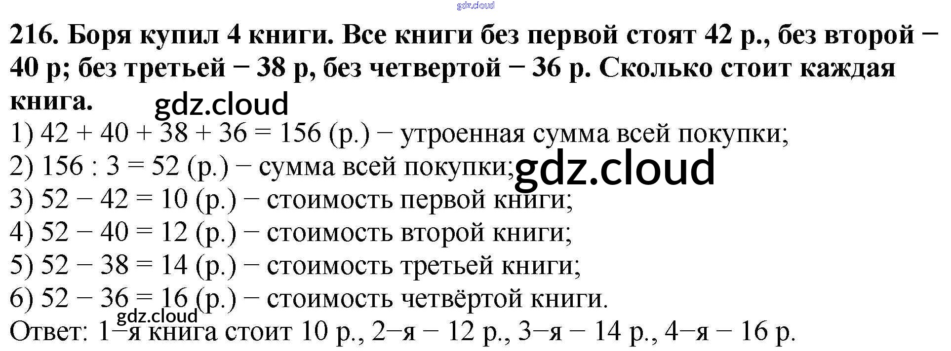 Ответ на задание 216 Учебник Математика за 4 (четвертый) класс Моро, Бантова, Бельтюкова, Волкова, Степанова Школа России 2015 Часть 1, 2