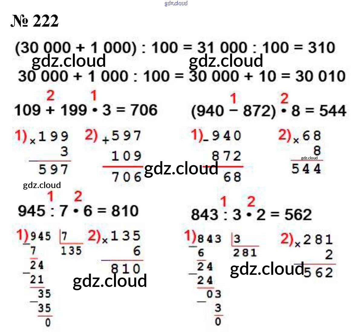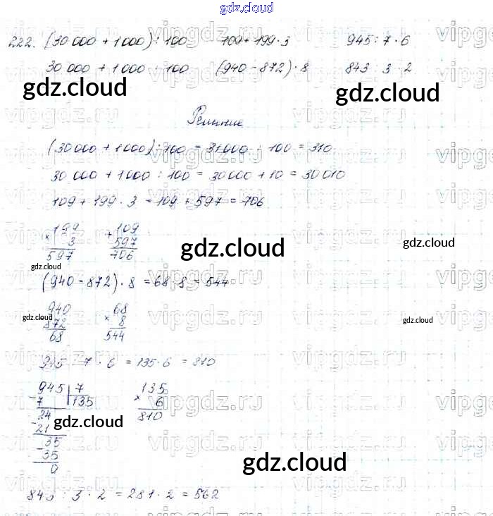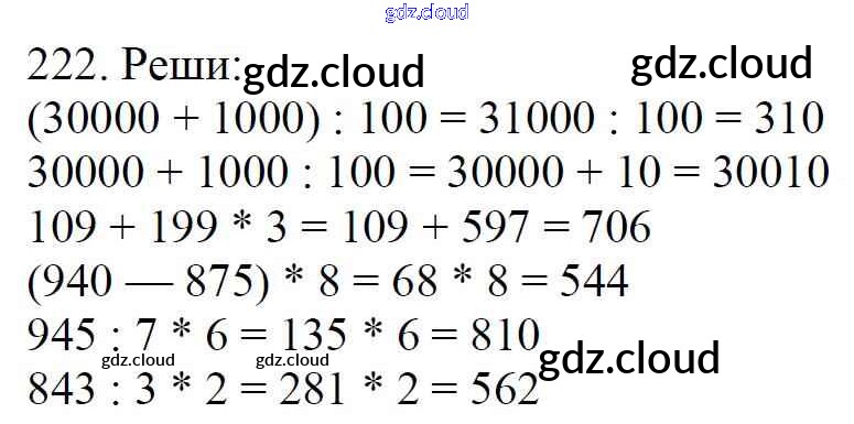 Ответ на задание 222 Учебник Математика за 4 (четвертый) класс Моро, Бантова, Бельтюкова, Волкова, Степанова Школа России 2015 Часть 1, 2