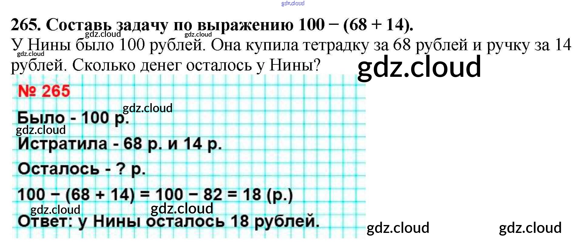 Ответ на задание 265 Учебник Математика за 4 (четвертый) класс Моро, Бантова, Бельтюкова, Волкова, Степанова Школа России 2015 Часть 1, 2