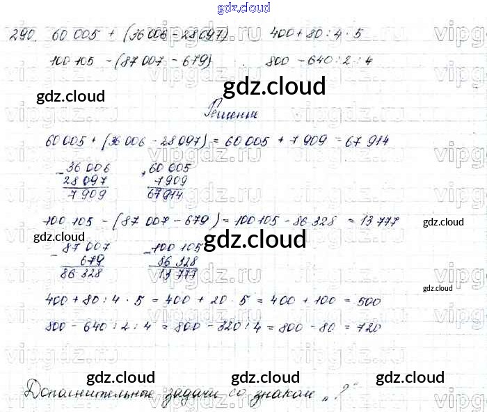 Ответ на задание 290 Учебник Математика за 4 (четвертый) класс Моро, Бантова, Бельтюкова, Волкова, Степанова Школа России 2015 Часть 1, 2