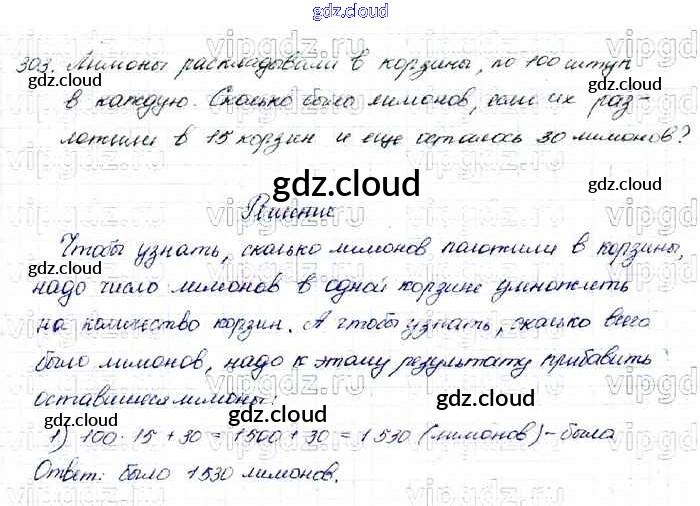 Ответ на задание 303 Учебник Математика за 4 (четвертый) класс Моро, Бантова, Бельтюкова, Волкова, Степанова Школа России 2015 Часть 1, 2