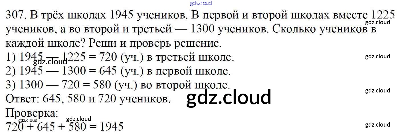 Ответ на задание 307 Учебник Математика за 4 (четвертый) класс Моро, Бантова, Бельтюкова, Волкова, Степанова Школа России 2015 Часть 1, 2
