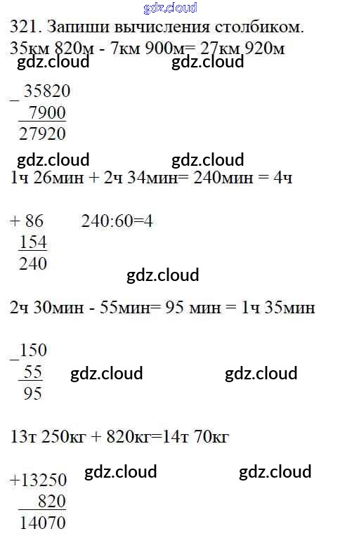 Ответ на задание 321 Учебник Математика за 4 (четвертый) класс Моро, Бантова, Бельтюкова, Волкова, Степанова Школа России 2015 Часть 1, 2
