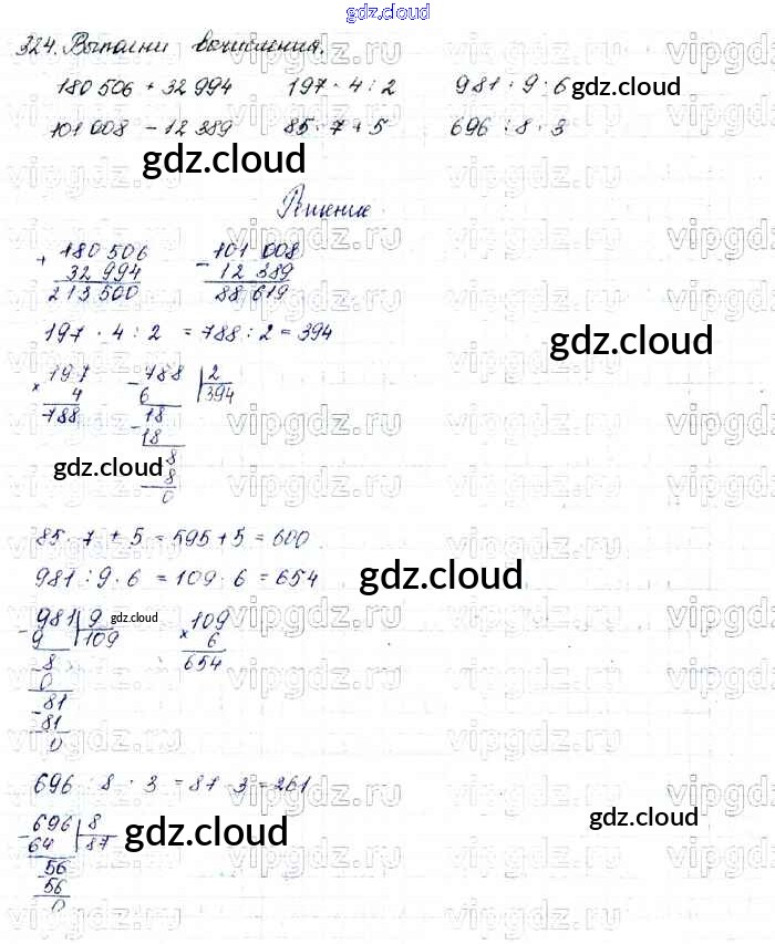 Ответ на задание 324 Учебник Математика за 4 (четвертый) класс Моро, Бантова, Бельтюкова, Волкова, Степанова Школа России 2015 Часть 1, 2