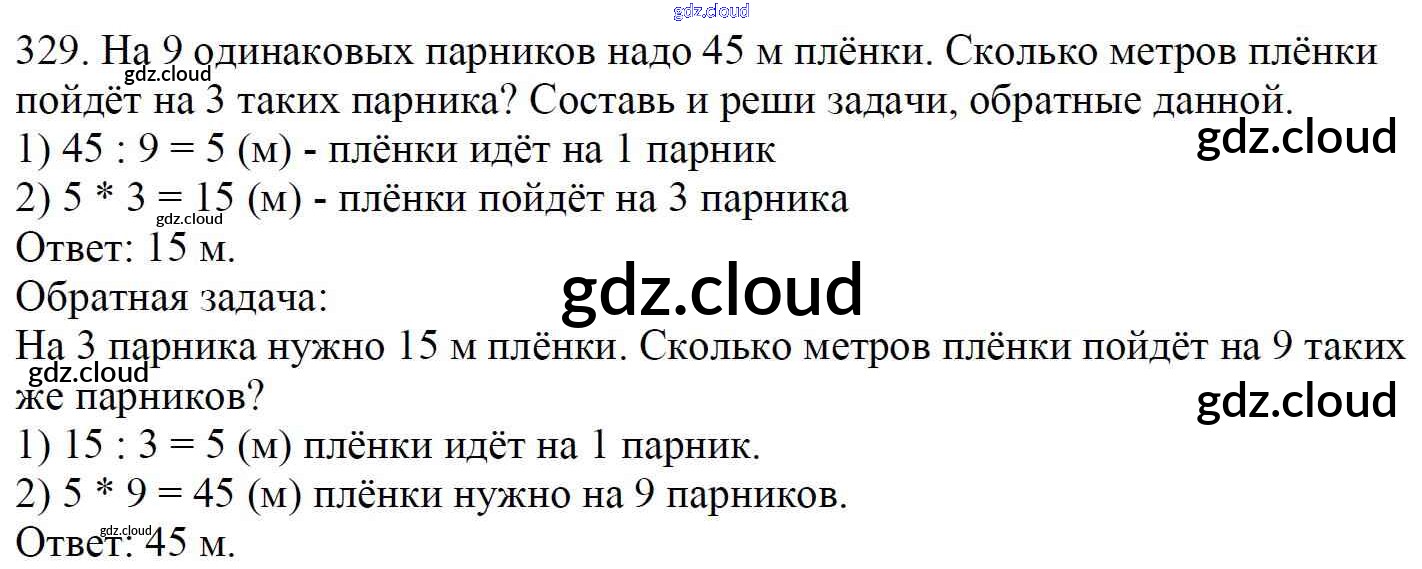 Ответ на задание 329 Учебник Математика  за 4 (четвертый) класс Моро, Бантова, Бельтюкова, Волкова, Степанова Школа России  2015 Часть 1, 2