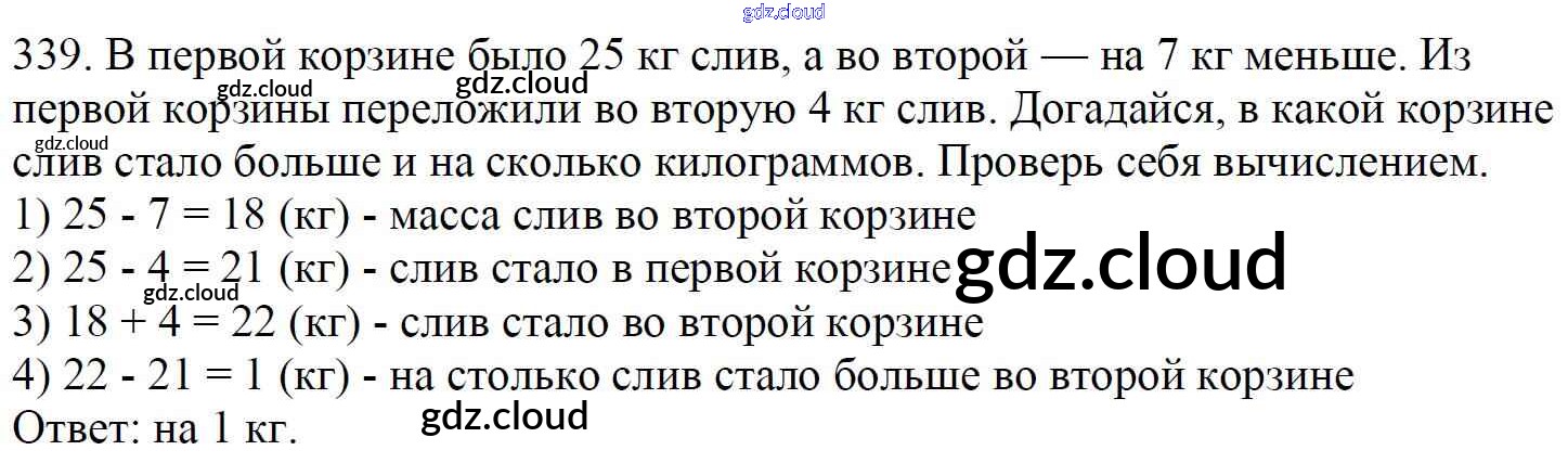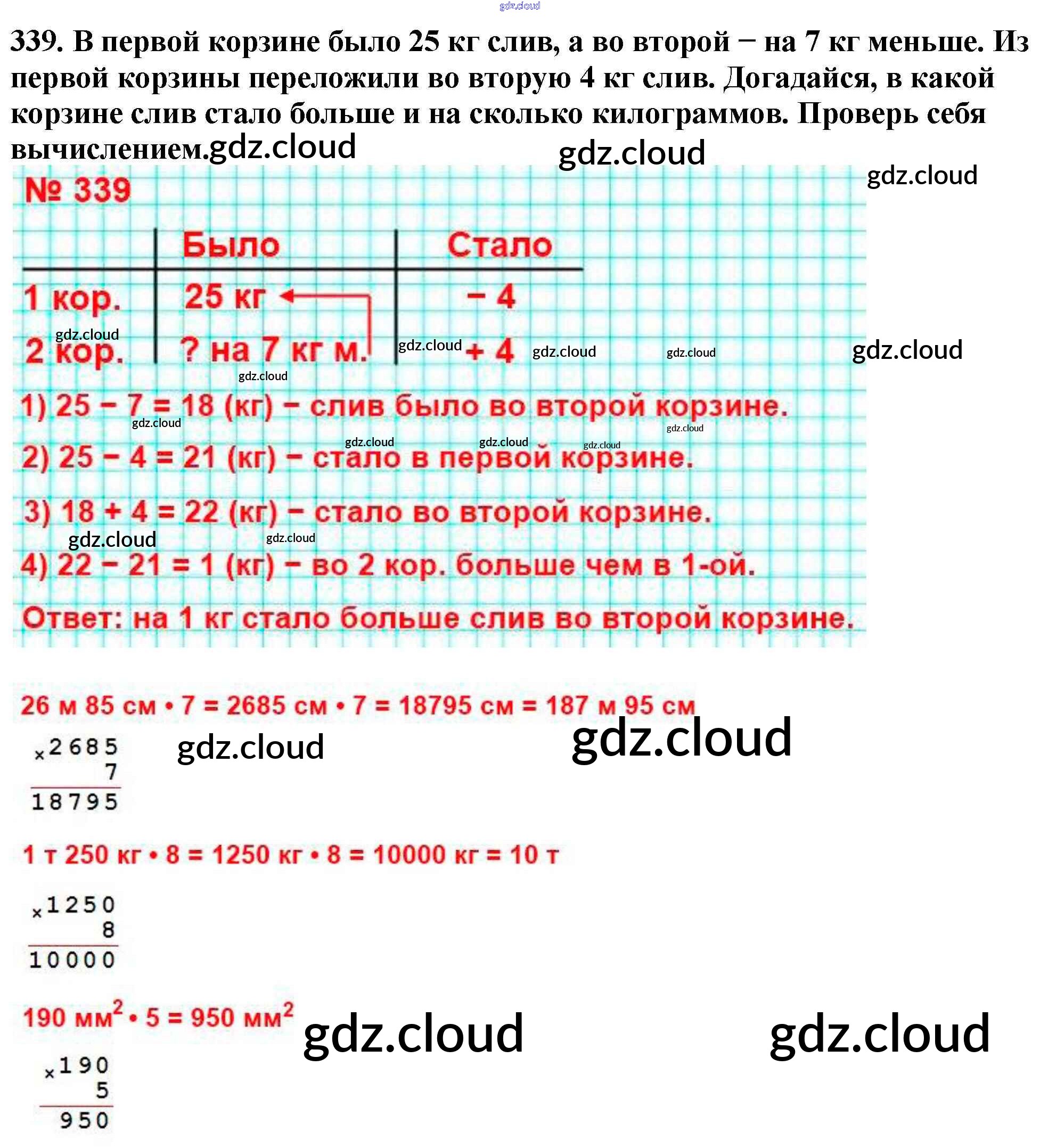 Ответ на задание 339 Учебник Математика  за 4 (четвертый) класс Моро, Бантова, Бельтюкова, Волкова, Степанова Школа России  2015 Часть 1, 2