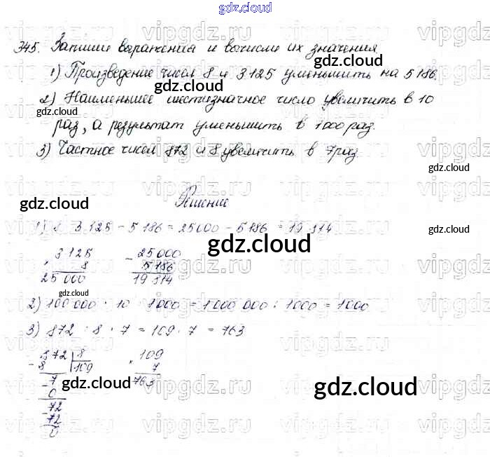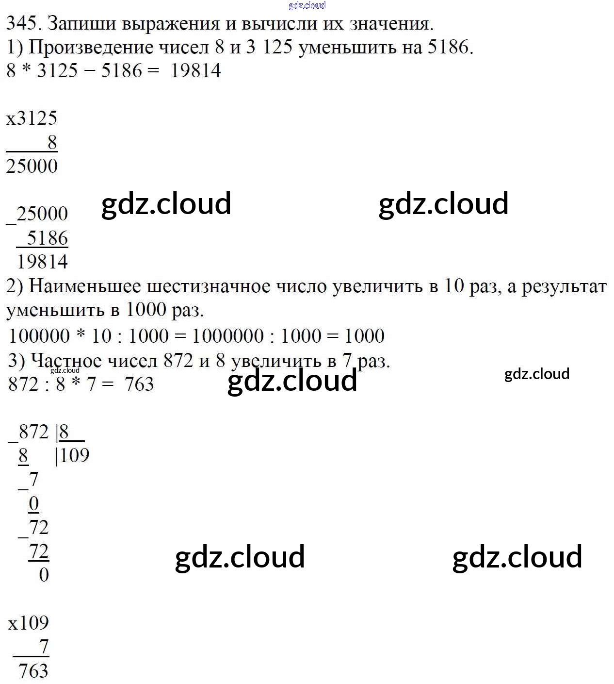 Ответ на задание 345 Учебник Математика  за 4 (четвертый) класс Моро, Бантова, Бельтюкова, Волкова, Степанова Школа России  2015 Часть 1, 2