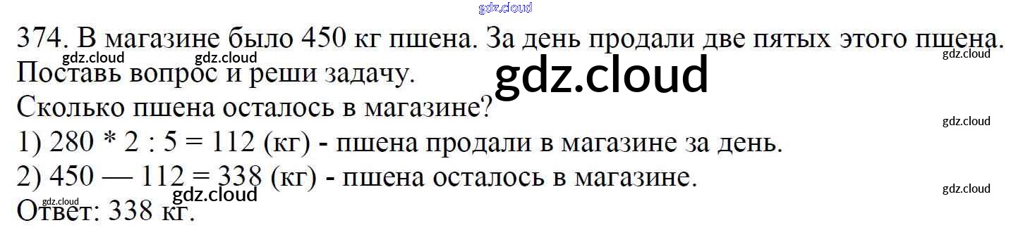 Ответ на задание 374 Учебник Математика за 4 (четвертый) класс Моро, Бантова, Бельтюкова, Волкова, Степанова Школа России 2015 Часть 1, 2