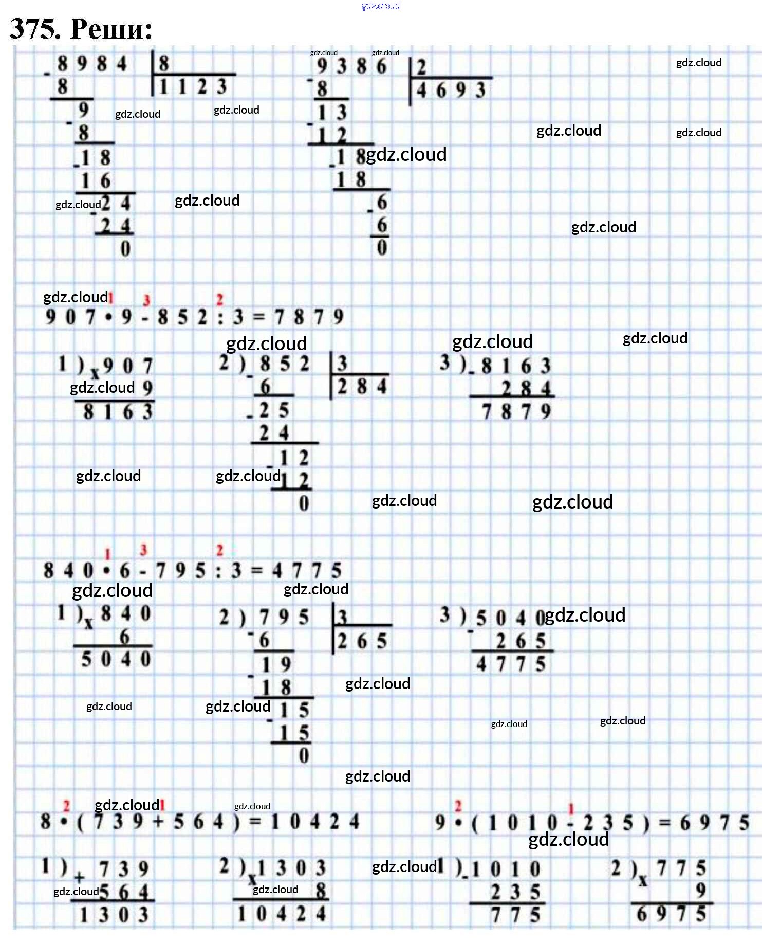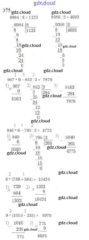 Ответ на задание 375 Учебник Математика за 4 (четвертый) класс Моро, Бантова, Бельтюкова, Волкова, Степанова Школа России 2015 Часть 1, 2